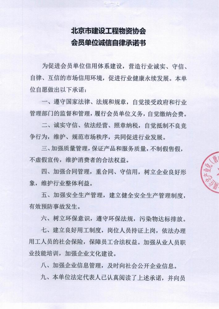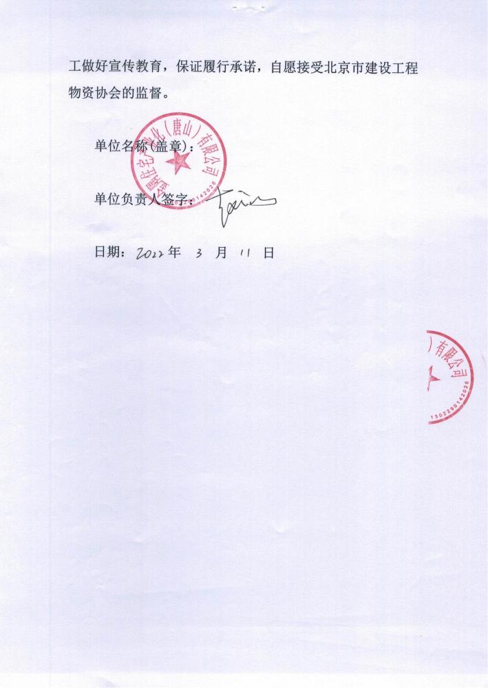 金隅住宅产业化(唐山)有限公司承诺宣言